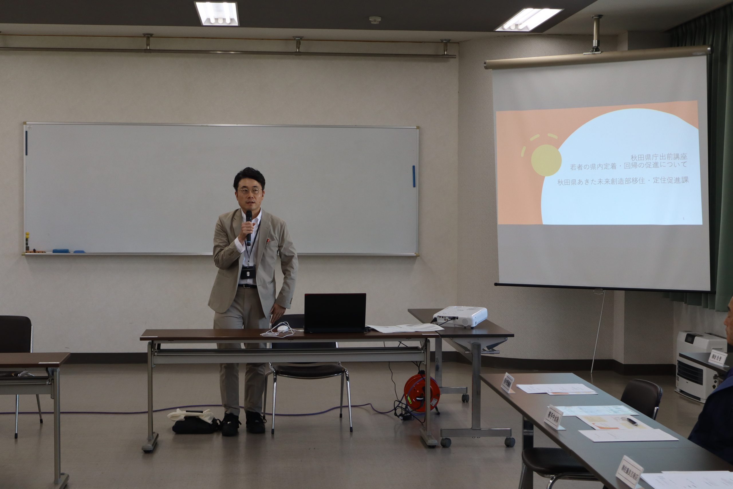 10月17日(金)月例会後に『若者の県内定着・回帰の促進について』と題し秋田県移住・定住促進課の柏﨑公亮氏を講師にお招きし県庁出前講座を開催しました。